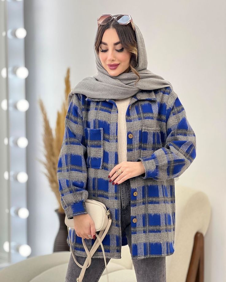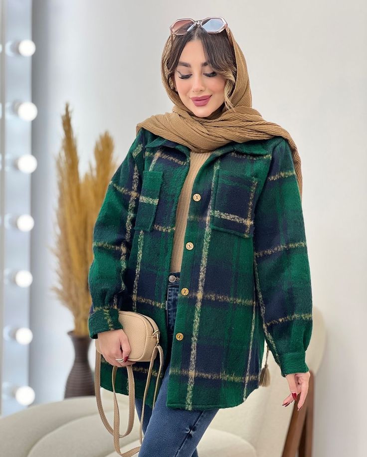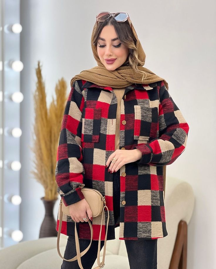 👗 مدل: شکت زنانه چهارخانه، دکمهدار، دارای جیب روی سینه، آستینبلند با سرآستین تاشو
